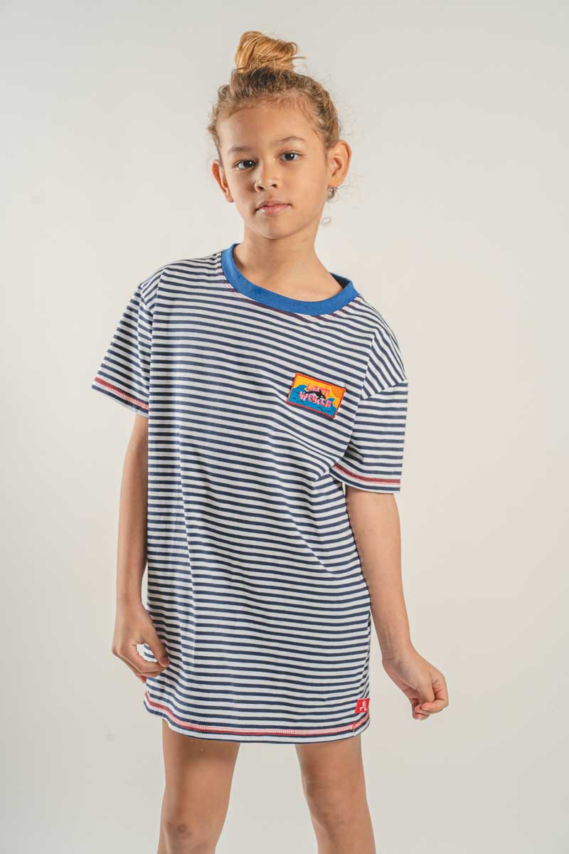 The patch on the chest with the words "lost world" is very ephemeral! A slightly subdued bluish border, it is a convenient one-piece dress that can be worn as a single piece, making it easy to coordinate with other outfits. Can also be worn as an over T-shirt.