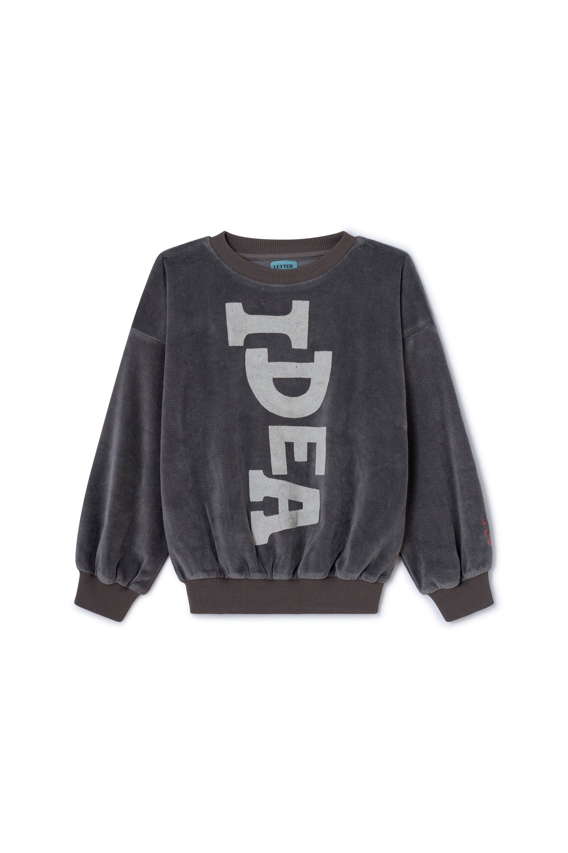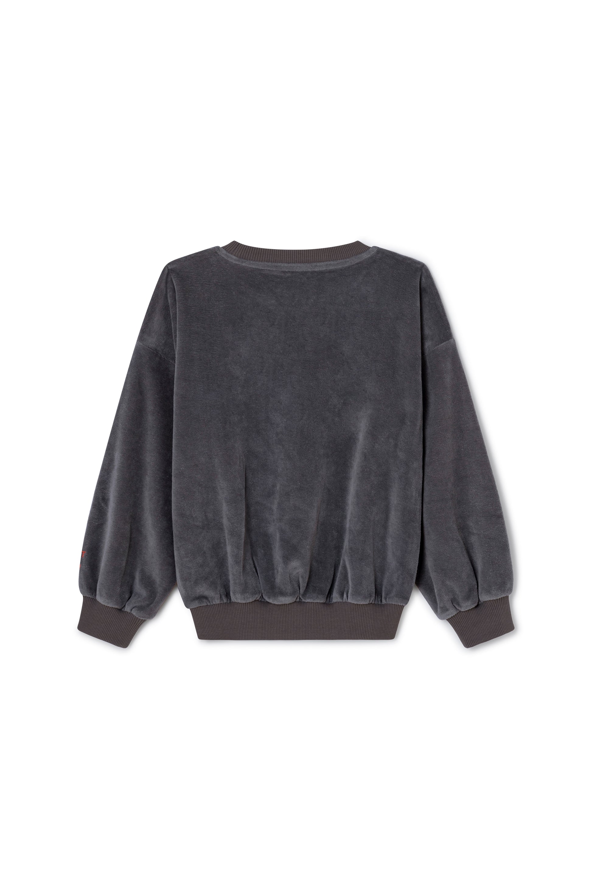裏起毛なし、とろんとしたベロアのスウェットトップス。オーガニックコトン100%の上質な肌触り。