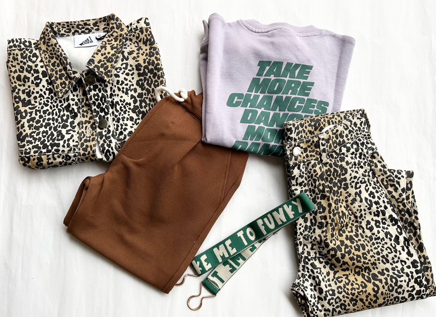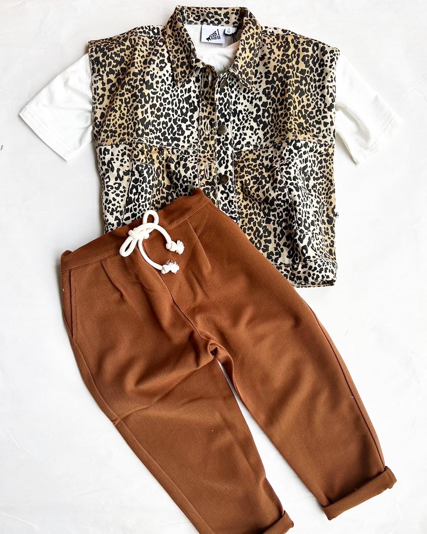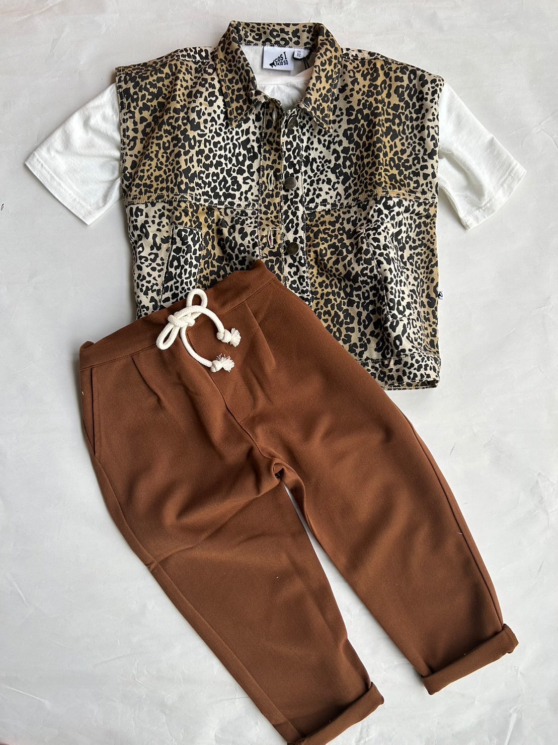 レオパード柄のベスト。レオパードパンツとセットアップとして着るとかっこいい!着回しも抜群です。ロックのTシャツと合わせて欲しい!