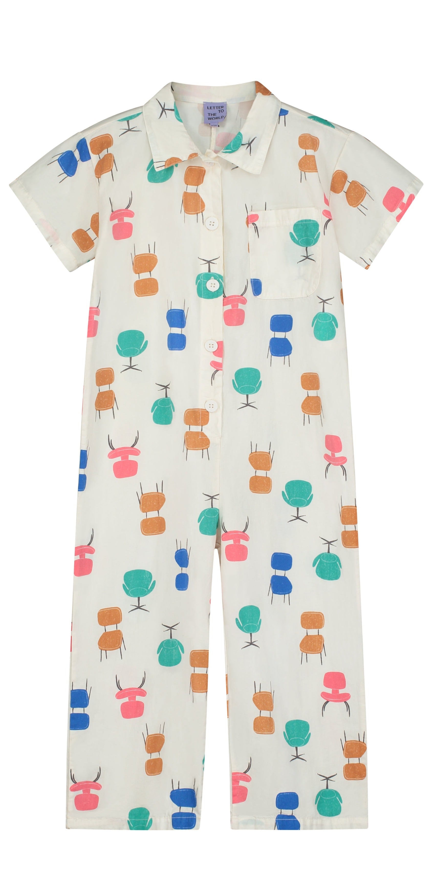 唯一無二の椅子柄が新鮮!そしてかわいい!薄手の柔らかん素材のオーガニックコットン素材で夏も快適です。