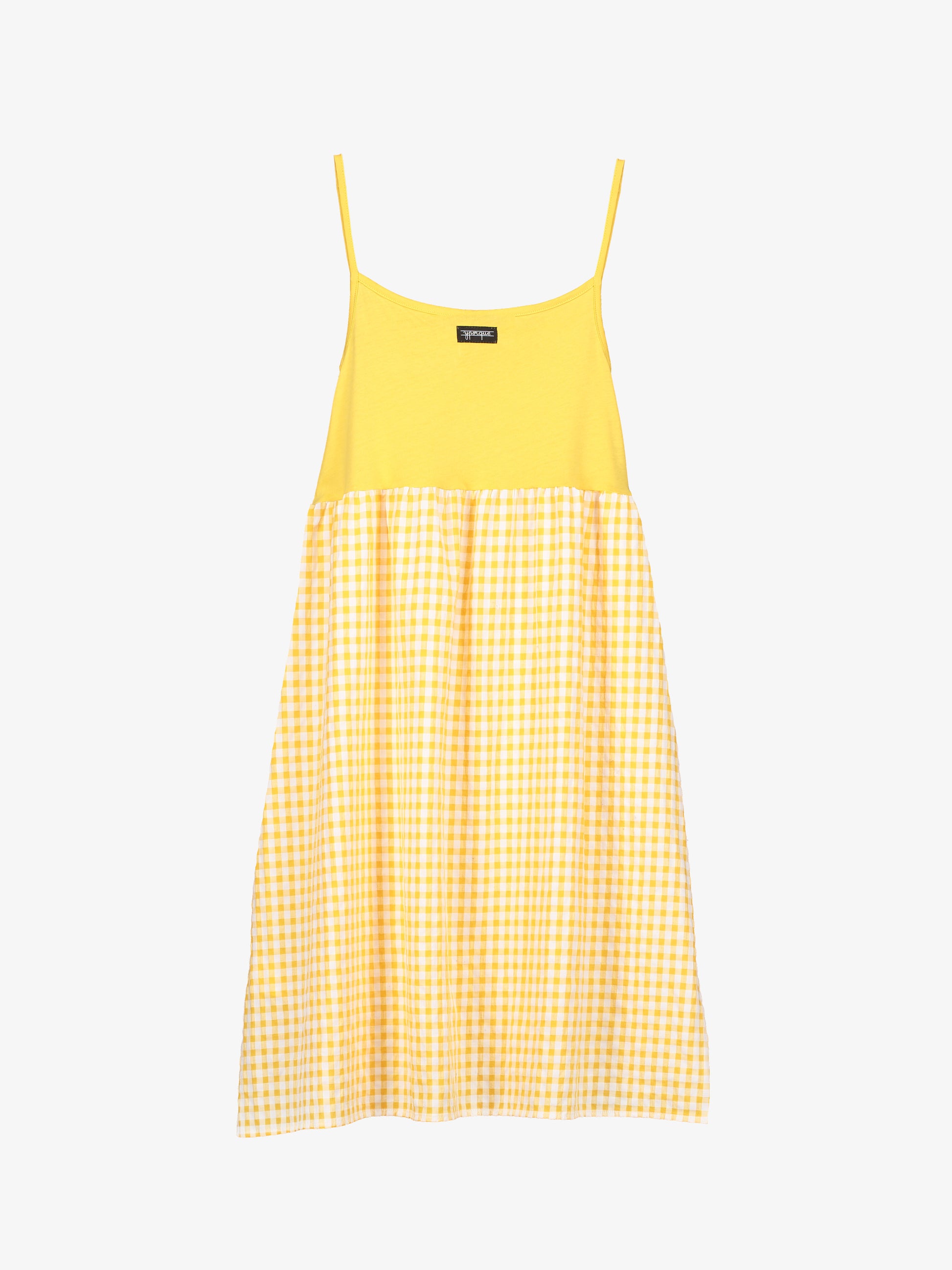 柔らかいコットン素材とシャリ感のあるギンガムチェック生地で、着心地良く涼しげに。プレイフルなイエローが春夏のお天気にとても映えます。