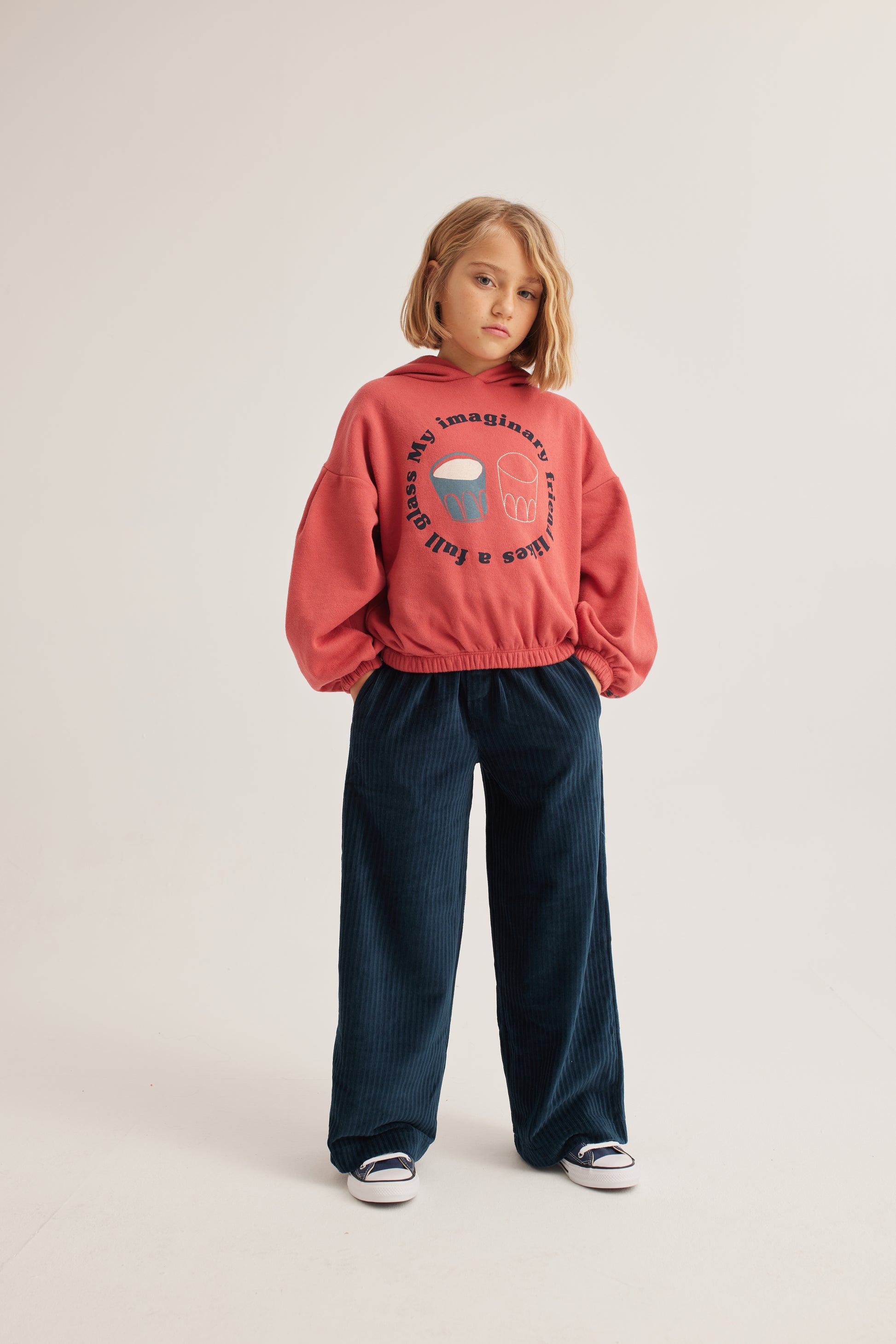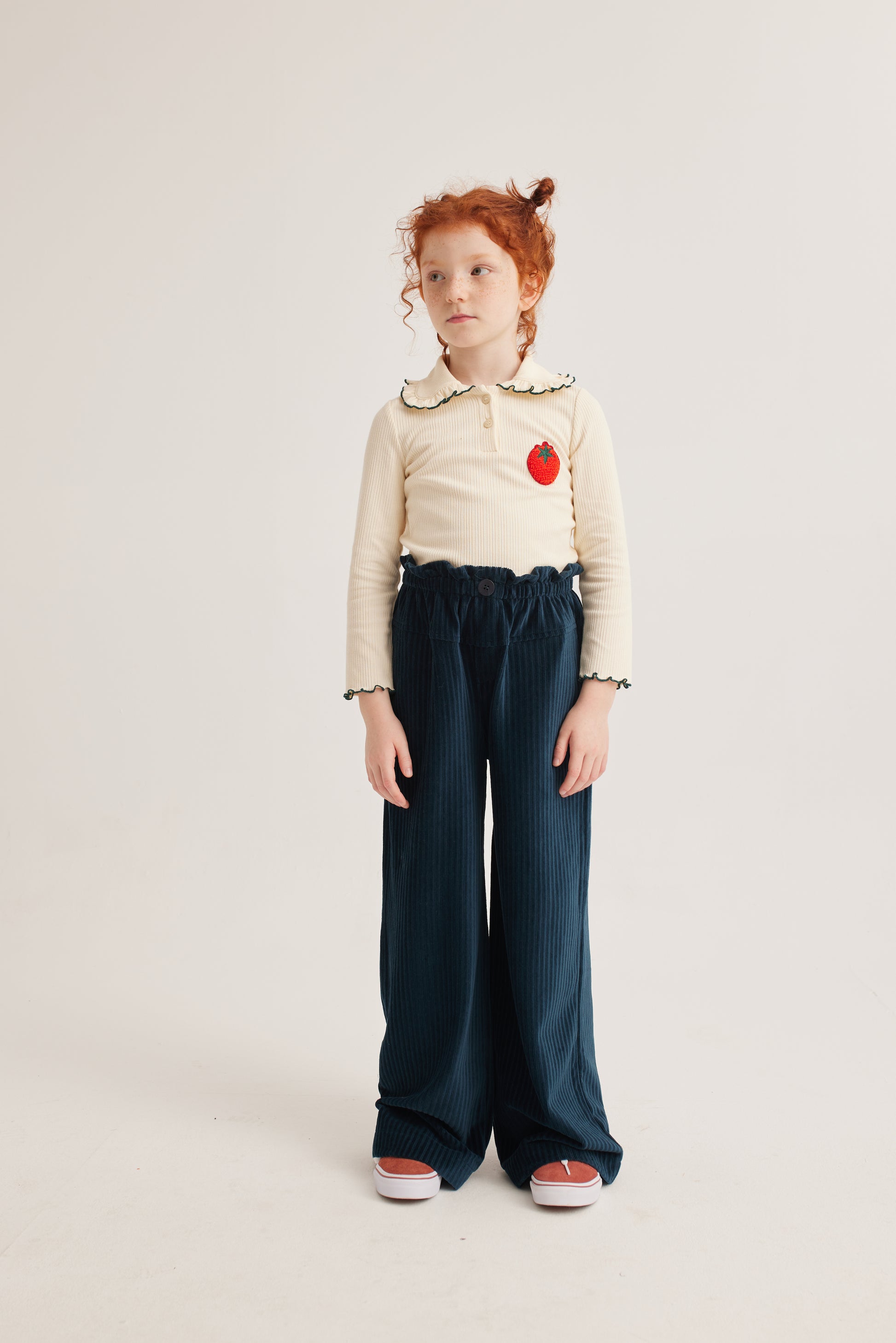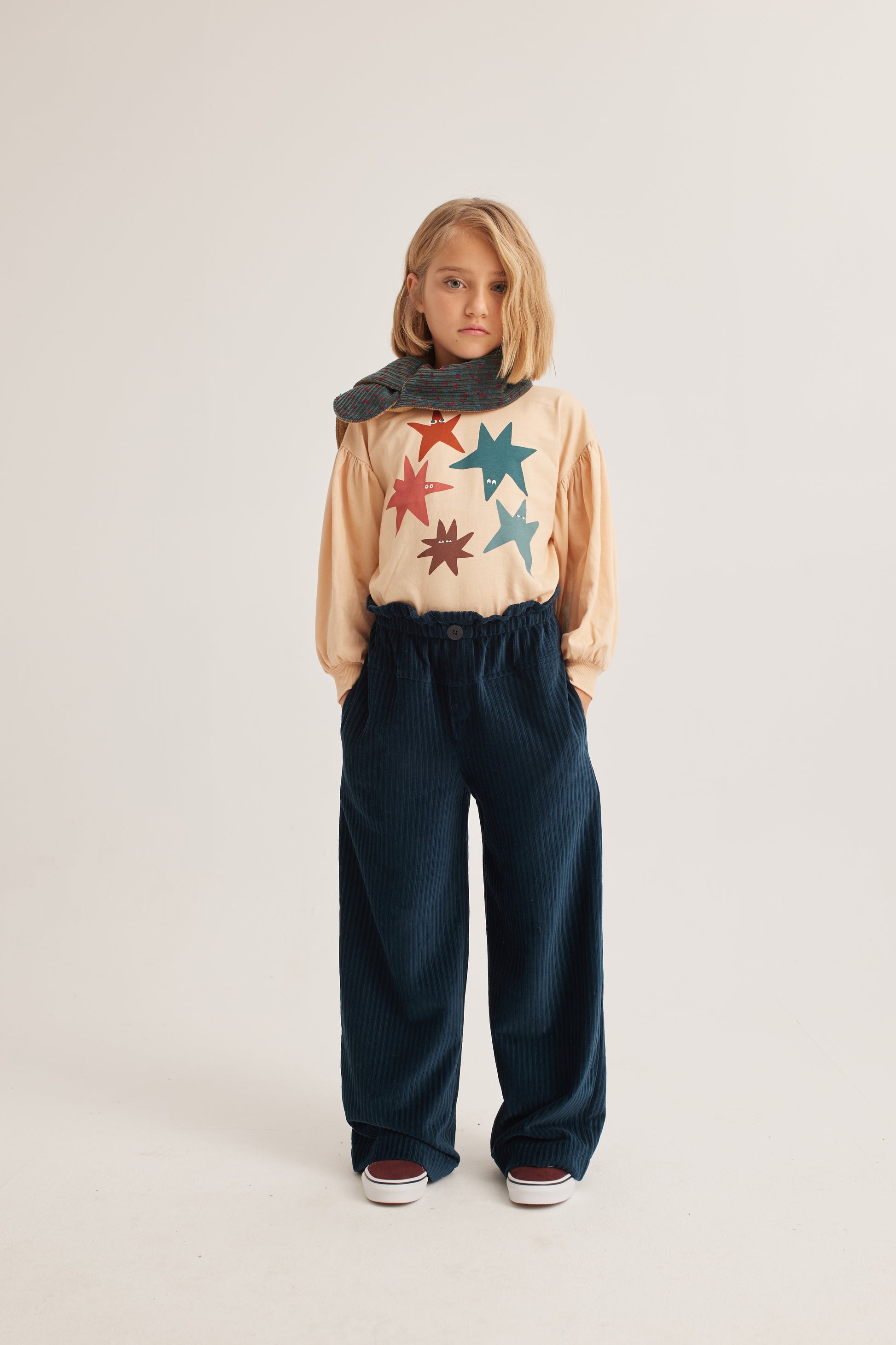 軽くて柔らかいコードゥロイ素材はオーガニックコットンならでは。ストレートなパンツで男女兼用。ウエストは締め付けを感じない伸びるとても柔らかいゴム仕様。ウェスト部分がポイントなのでトップスをインで着ても可愛いです。