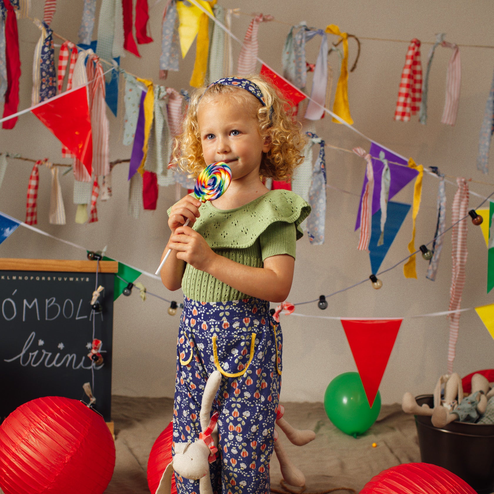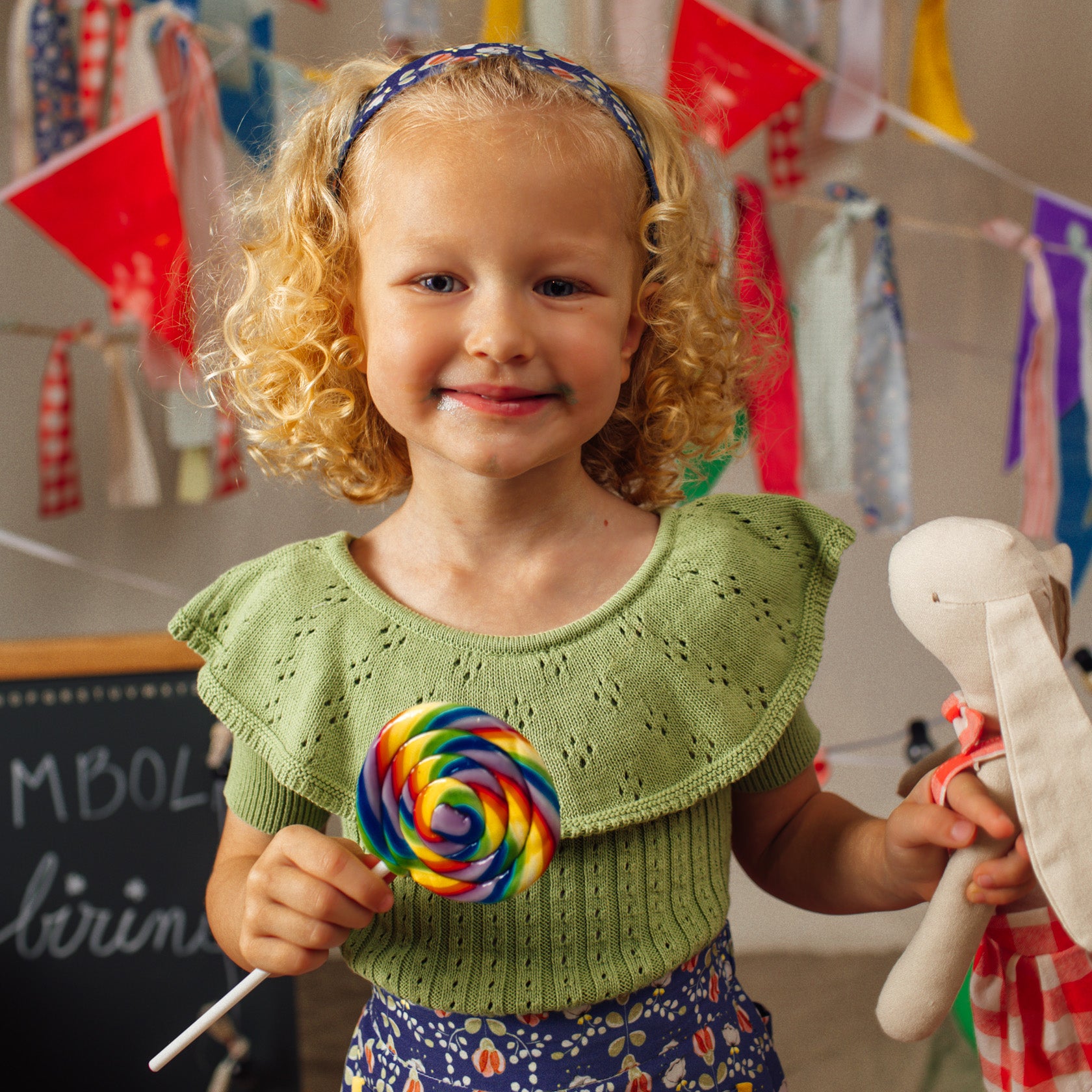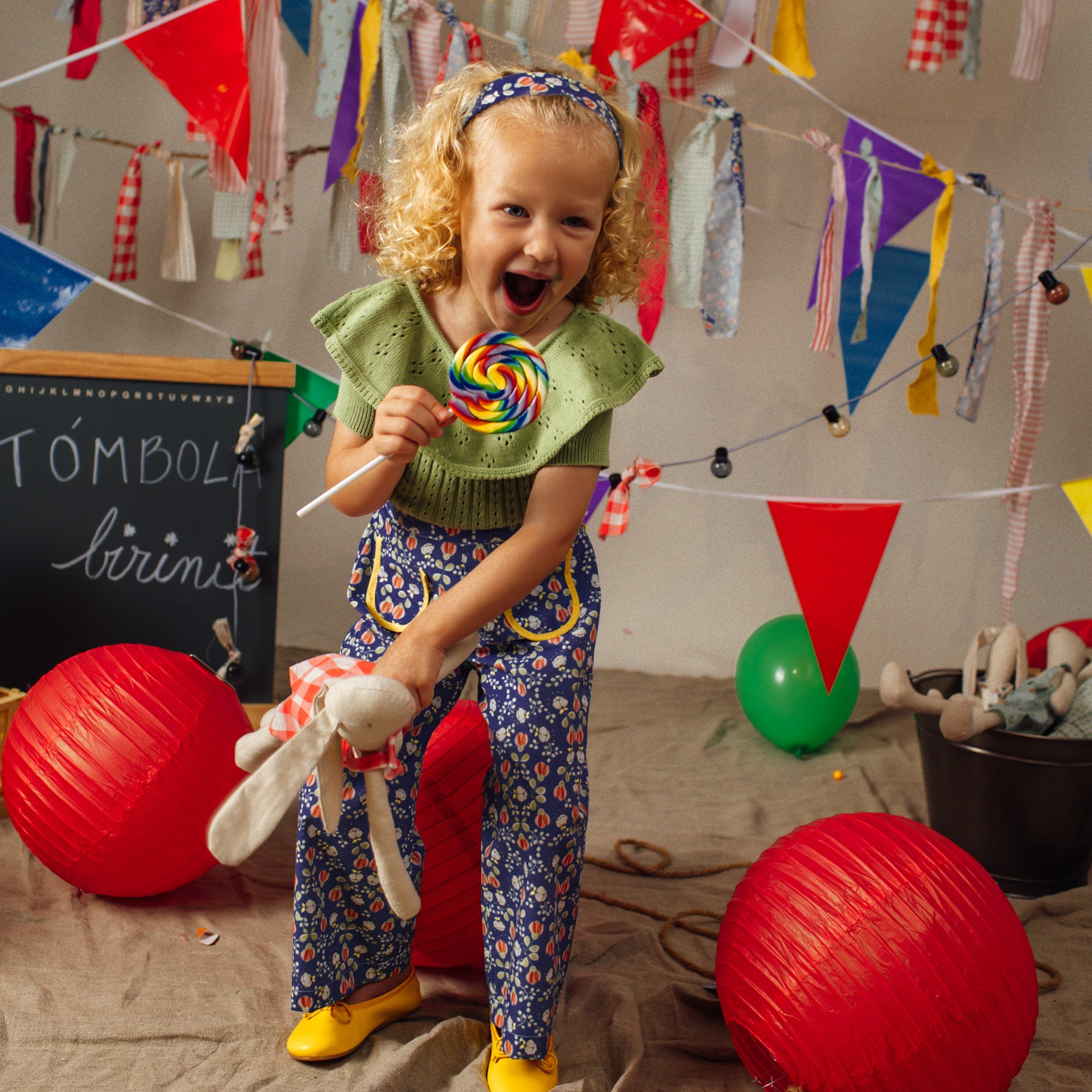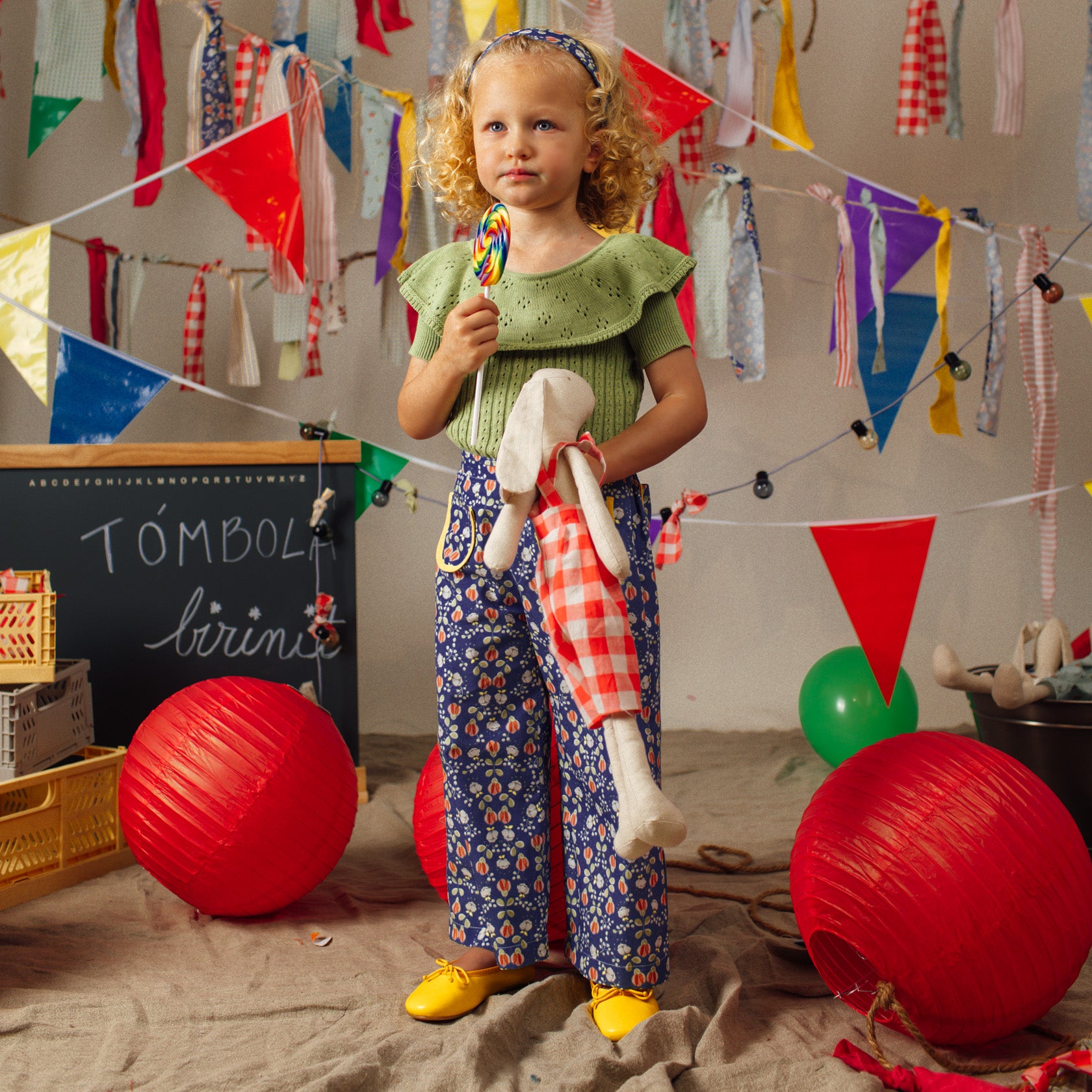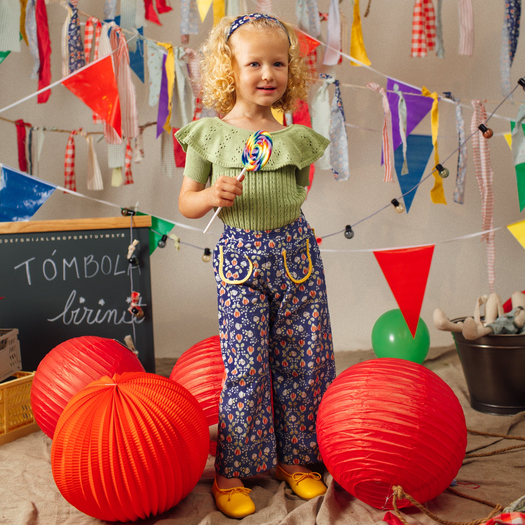 ピスタチオカラーのコットンサマーニット。大きな襟元がコーディネートのアクセントに。スカートやベルボトムパンツ、デニムなど色んなコーデを楽しめます。