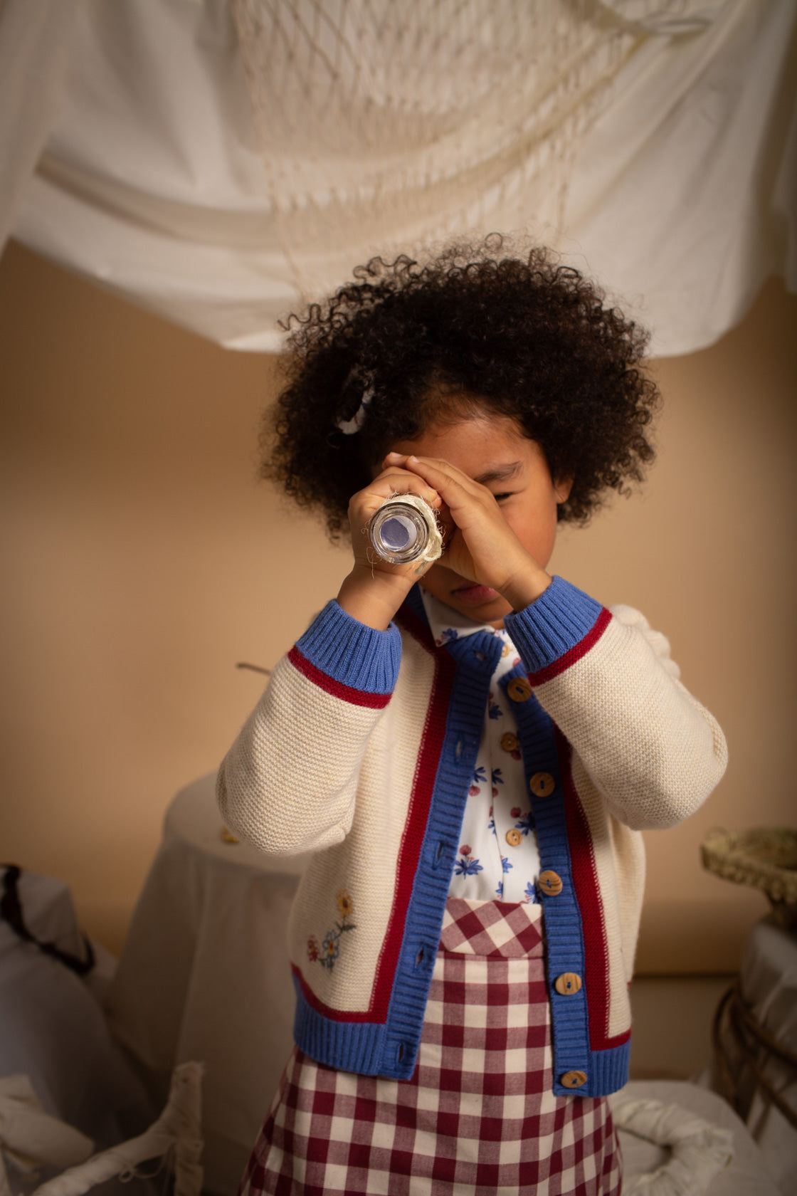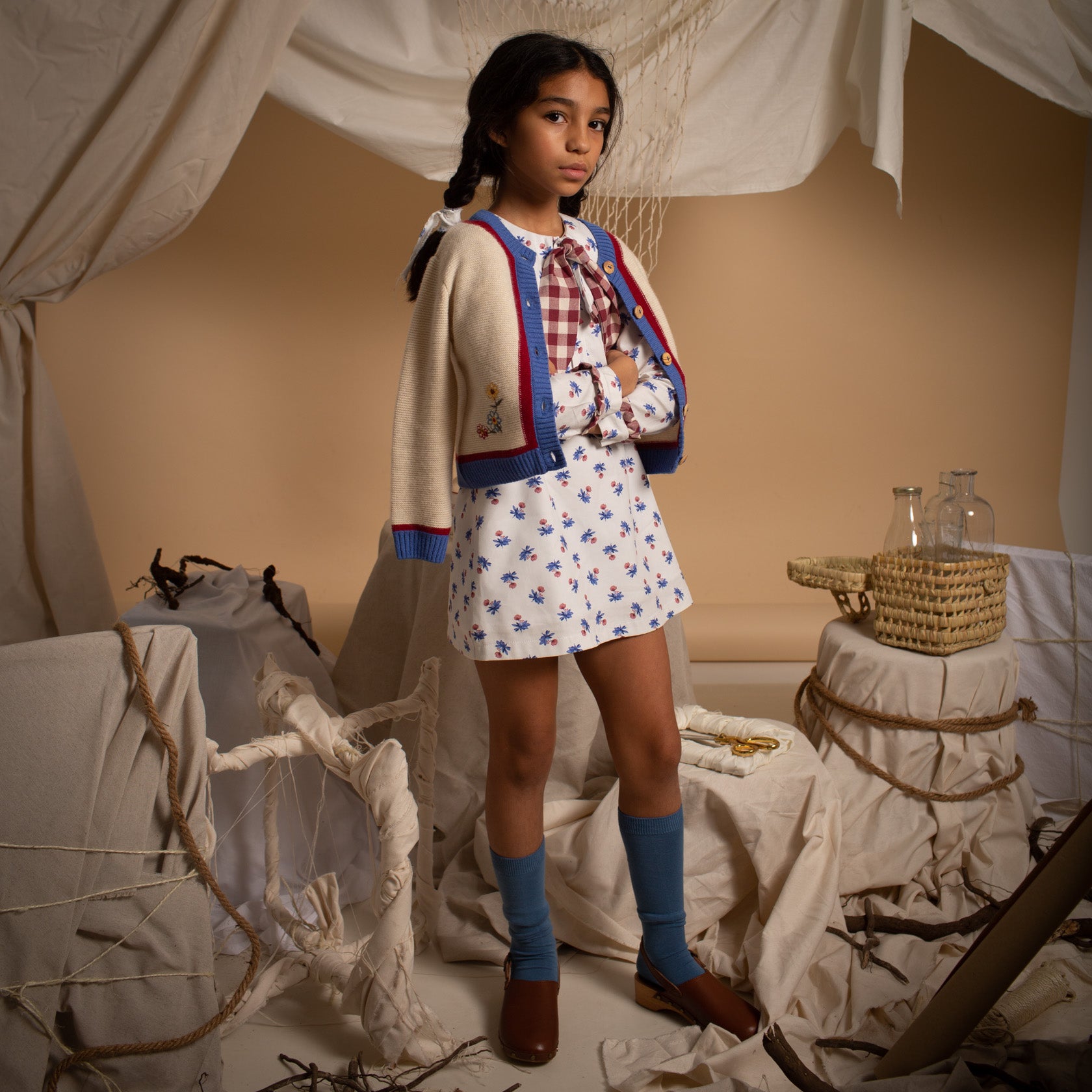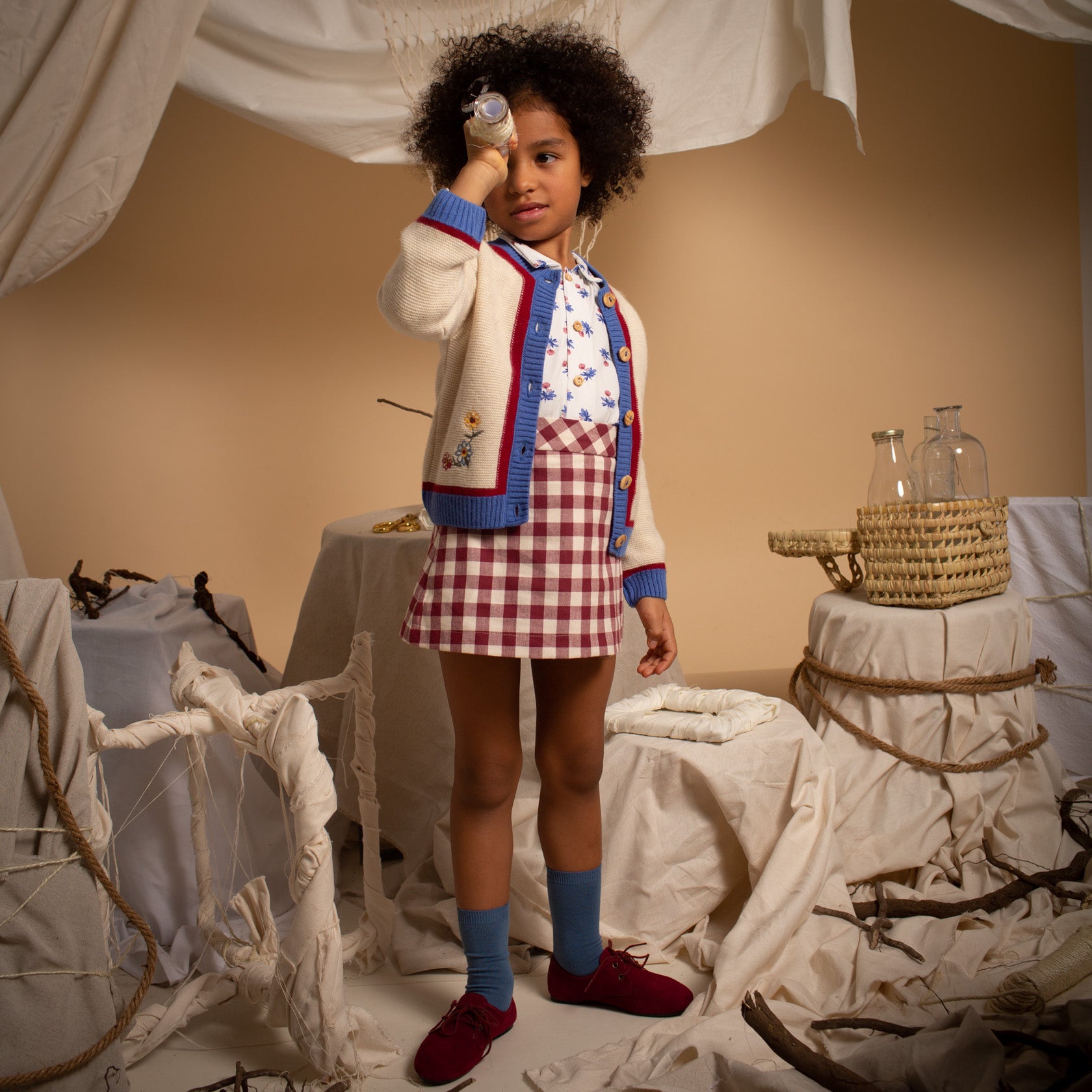 ちくちくしない柔らかい糸で編まれたメリノウールニット。少しコンサバなデザインが絶妙。スカートとのセットアップで着ても、単独で着ても可愛いく着回しのきくアイテム。涼しくなる秋口から冬本番まで活躍間違いなし。