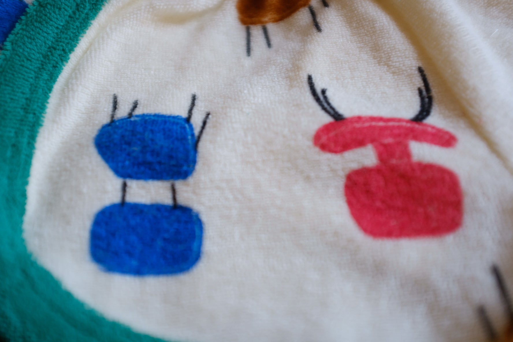 肌触りの良いパイル生地。椅子プリントがとてつもなくかわいい!フロントからバックに向けて立体感の出る切り返しで通気性も良く、ガールズでもボーイズでも可愛く着こなせます。
