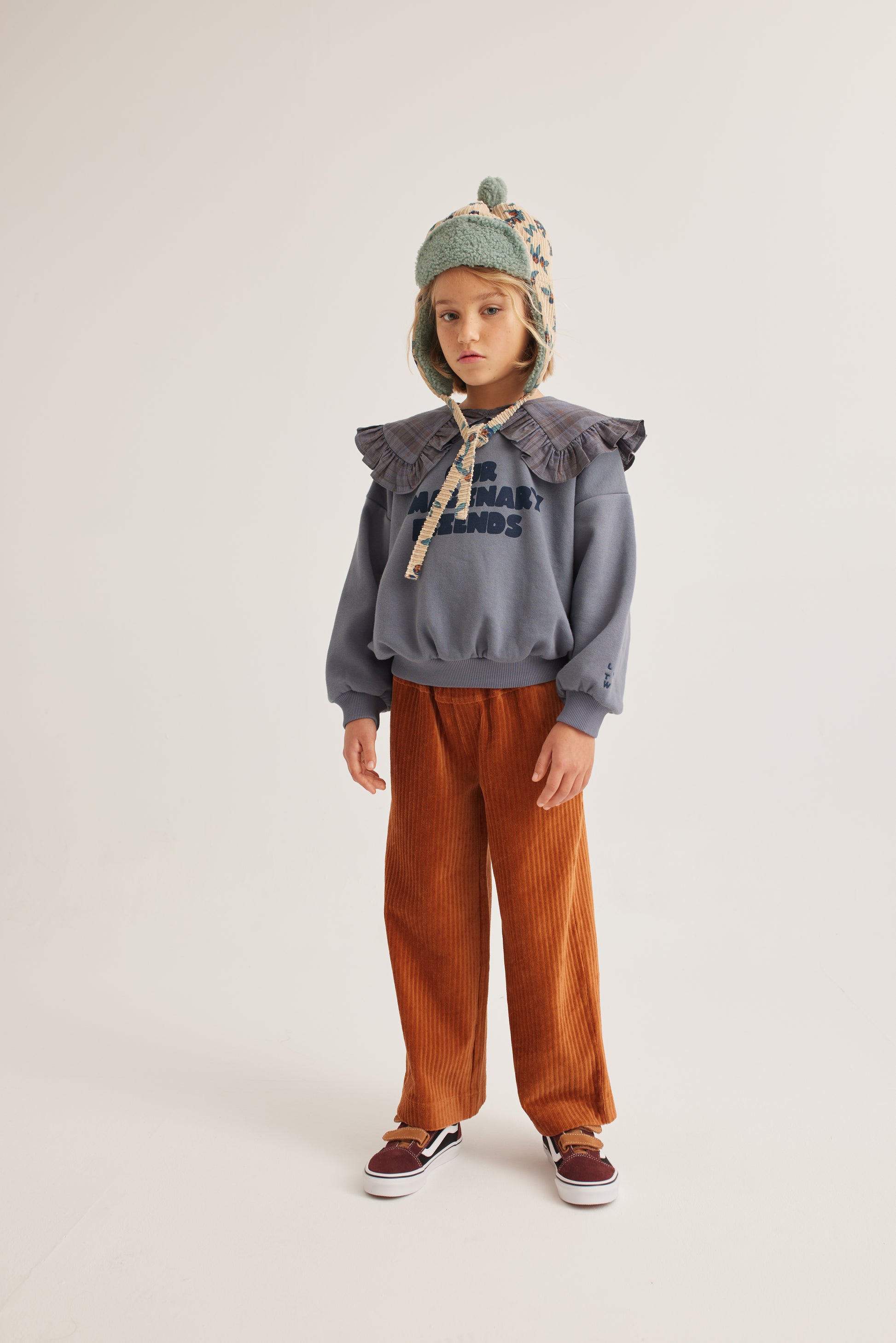LTTWのシグネチャーとも言える襟付きスウェット。今期はチェックの襟にメッセージがかわいい。