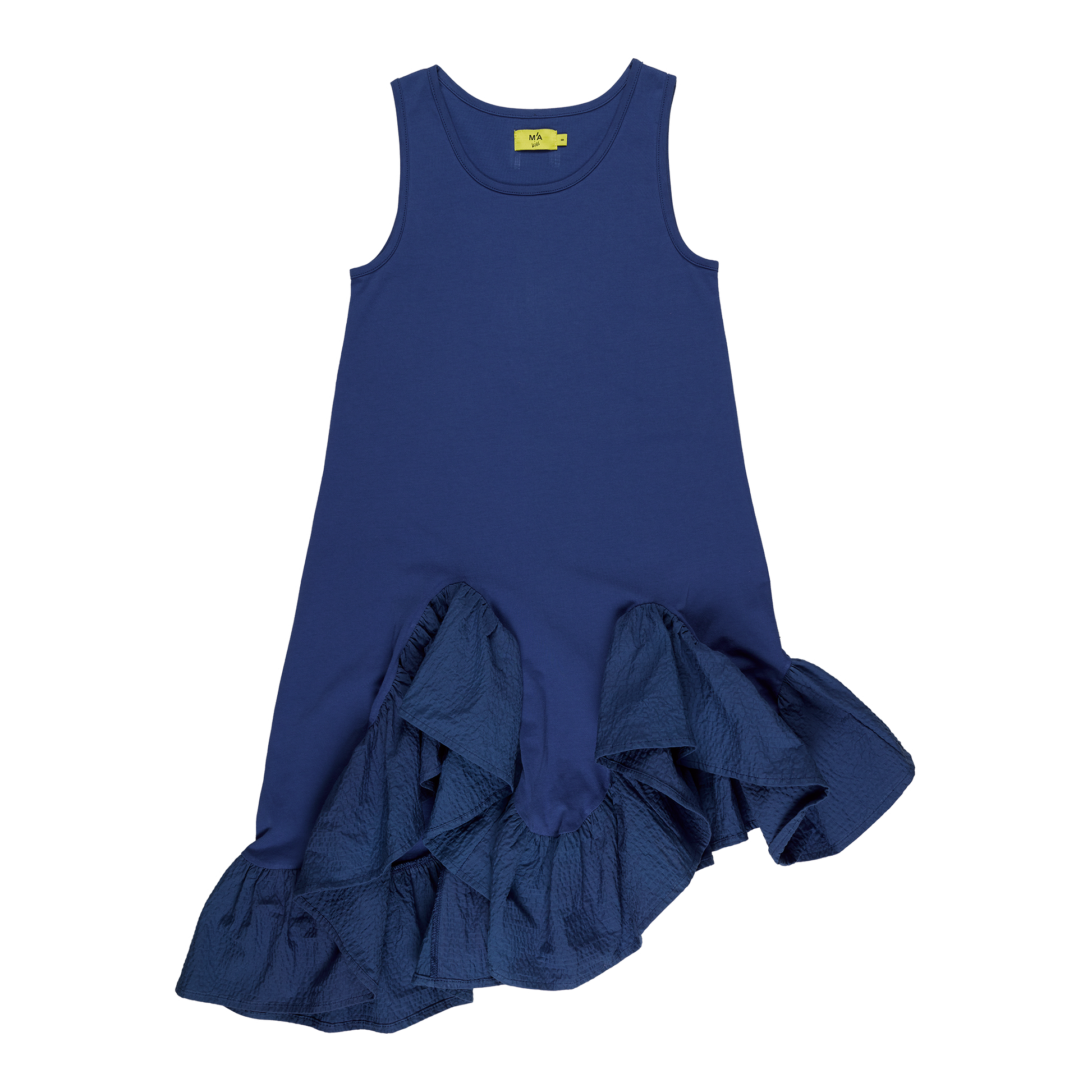 マルケスらしいアシンメトリーなワンピース。ネイビーカラーが甘くなりすぎずおしゃれな雰囲気に。スニーカーやサンダルと合わせたり、スウェットやTシャツを上からざっくり着ても可愛いです。