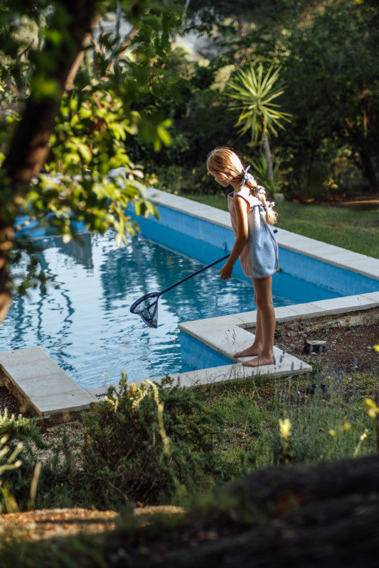 タオルとしても使えるタオル生地のワンピース。(ワンピース型タオル?)ビーチやプールで遊んだ後にそのまま水着の上に着用できる便利アイテムです。