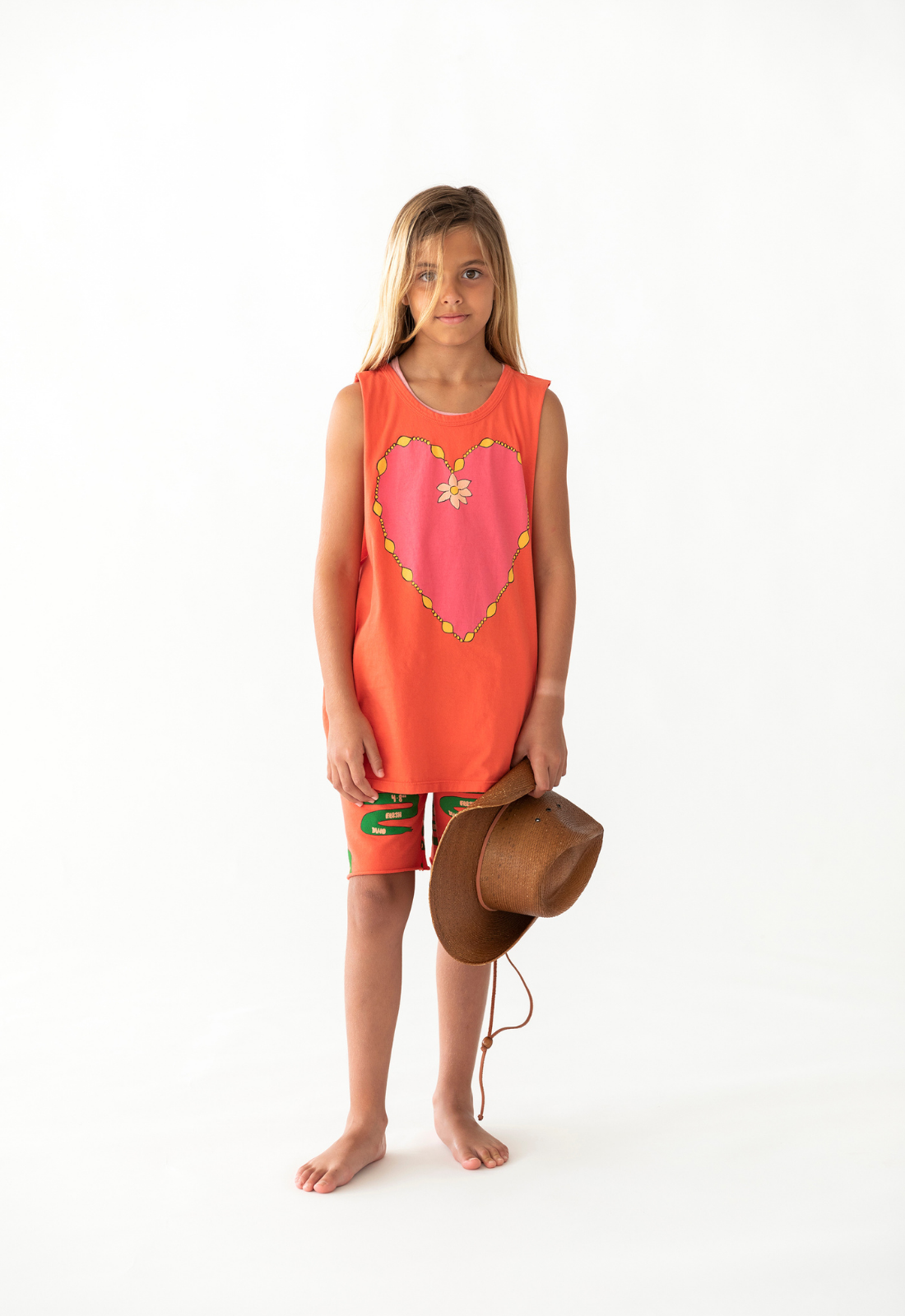裾が切りっぱなしデザインのショーツ。スネーク柄がかっこいい、少しオレンジがかった赤です。ポケット付き。