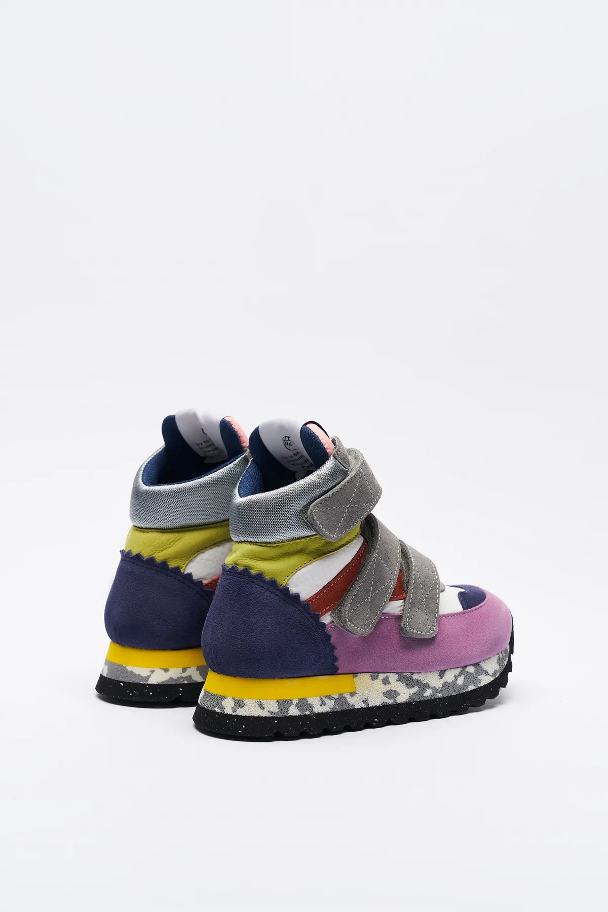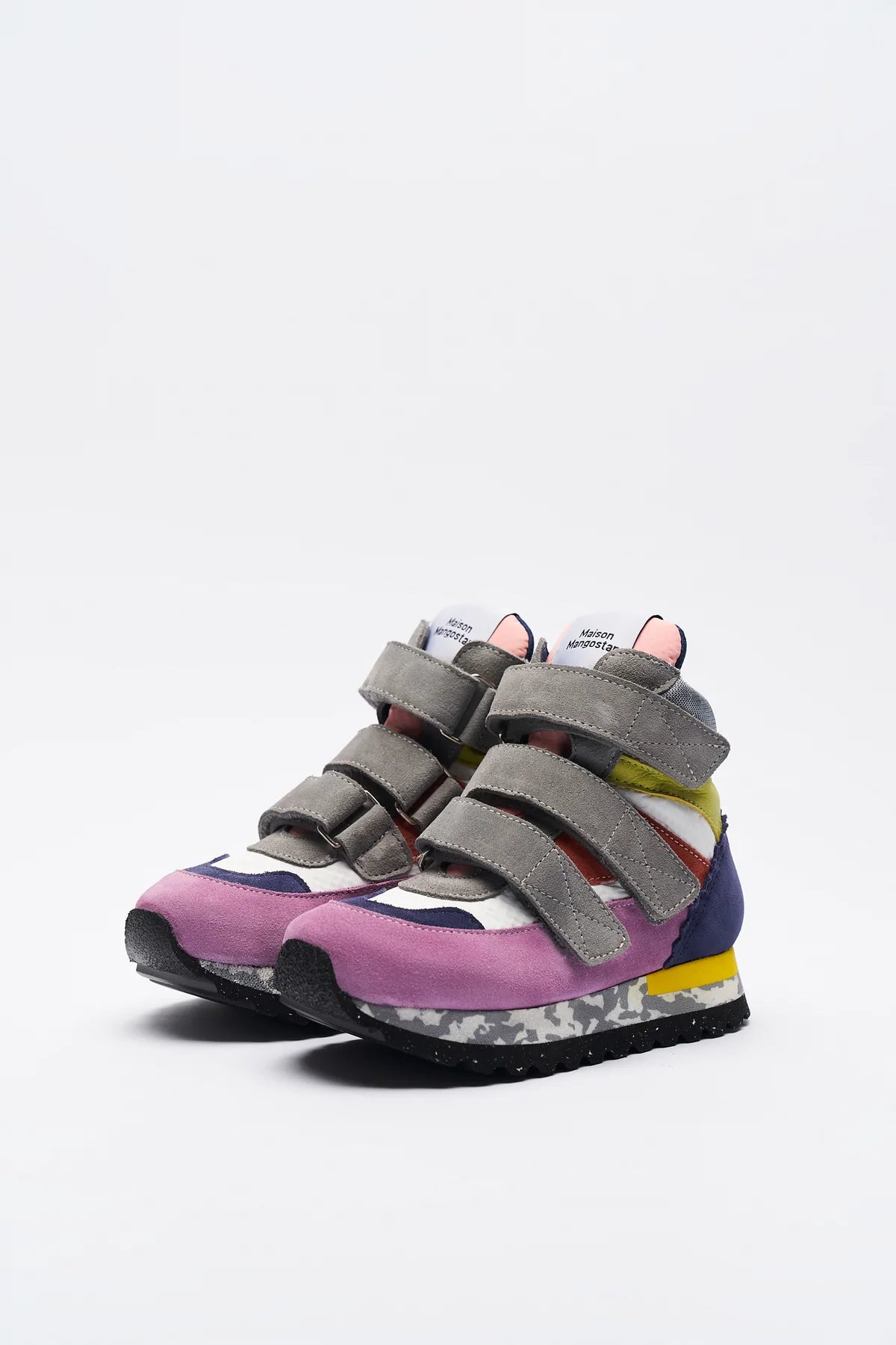 配色や大きなベロが可愛いマンゴスタンらしいスニーカー。マジックテープで着脱簡単。安定感抜群、お子様の足の形にフィットする作りになっています。そして、とても軽い!
